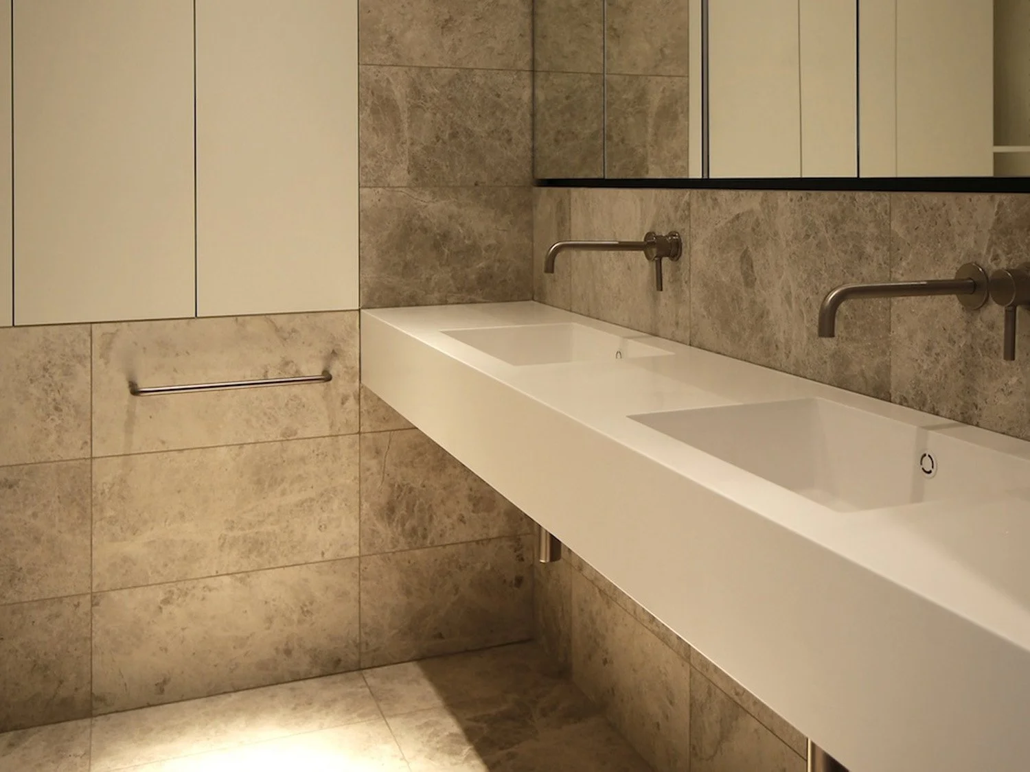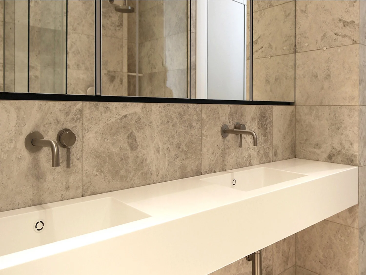 Supply and fit Corian / Solid Surfaces vanity top in the master bathroom